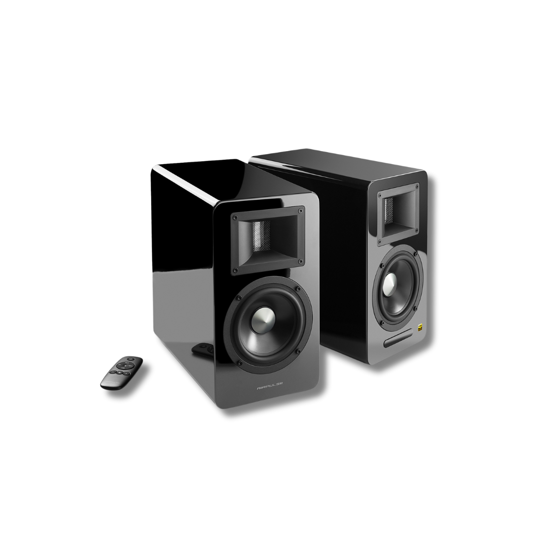 Ideal for those venturing into Hi-Res audio, the A100 speakers offer a complete set of features in a compact bookshelf design. With multiple digital and analog inputs, they provide versatile connectivity options.