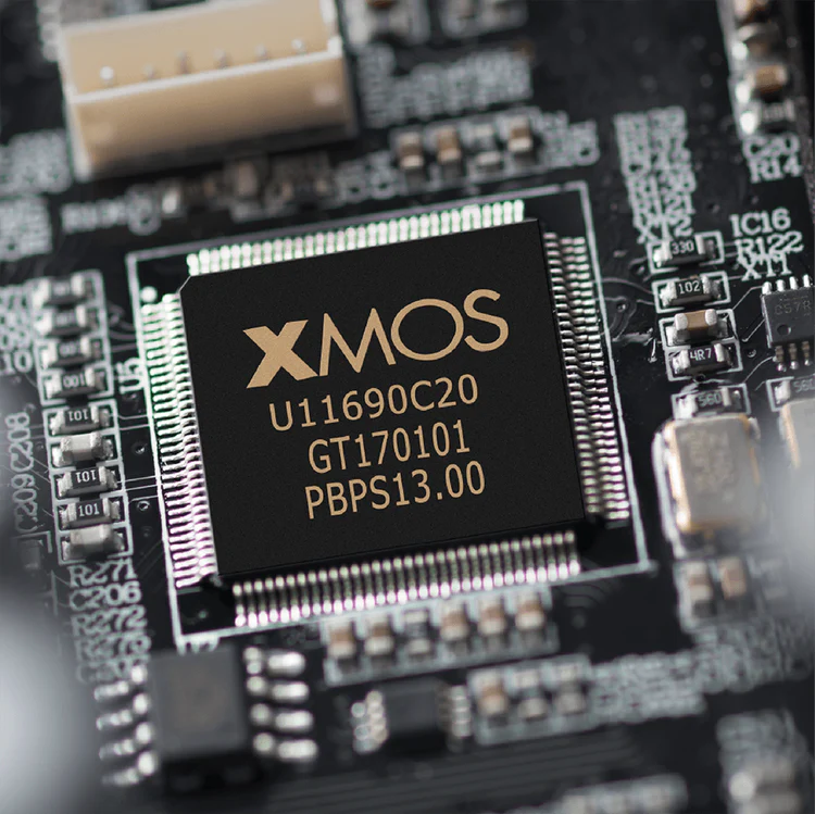 At the heart of the A80's digital system is the XMOS XU216, a 16-core processor based on the xCore200 architecture, capable of delivering up to 2000 MIPS of processing power. The amplification system utilizes two TAS5754 Class-D amplifiers from Texas Instruments, ensuring ultra-low output jitter. This configuration allows the audio signal to be transmitted to the XMOS processor with zero loss, resulting in precise, high-fidelity sound reproduction with minimal distortion.