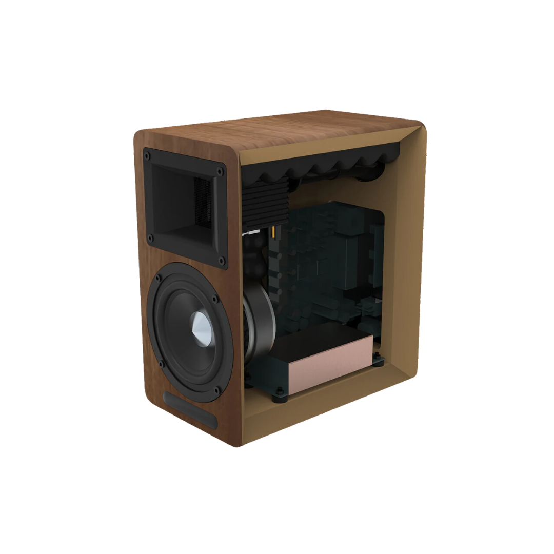 Encased in a sturdy 18-mm thick MDF cabinet with a sleek walnut finish, the A80 is designed to offer both exceptional performance and aesthetic appeal.