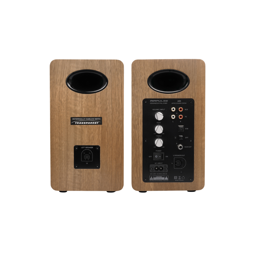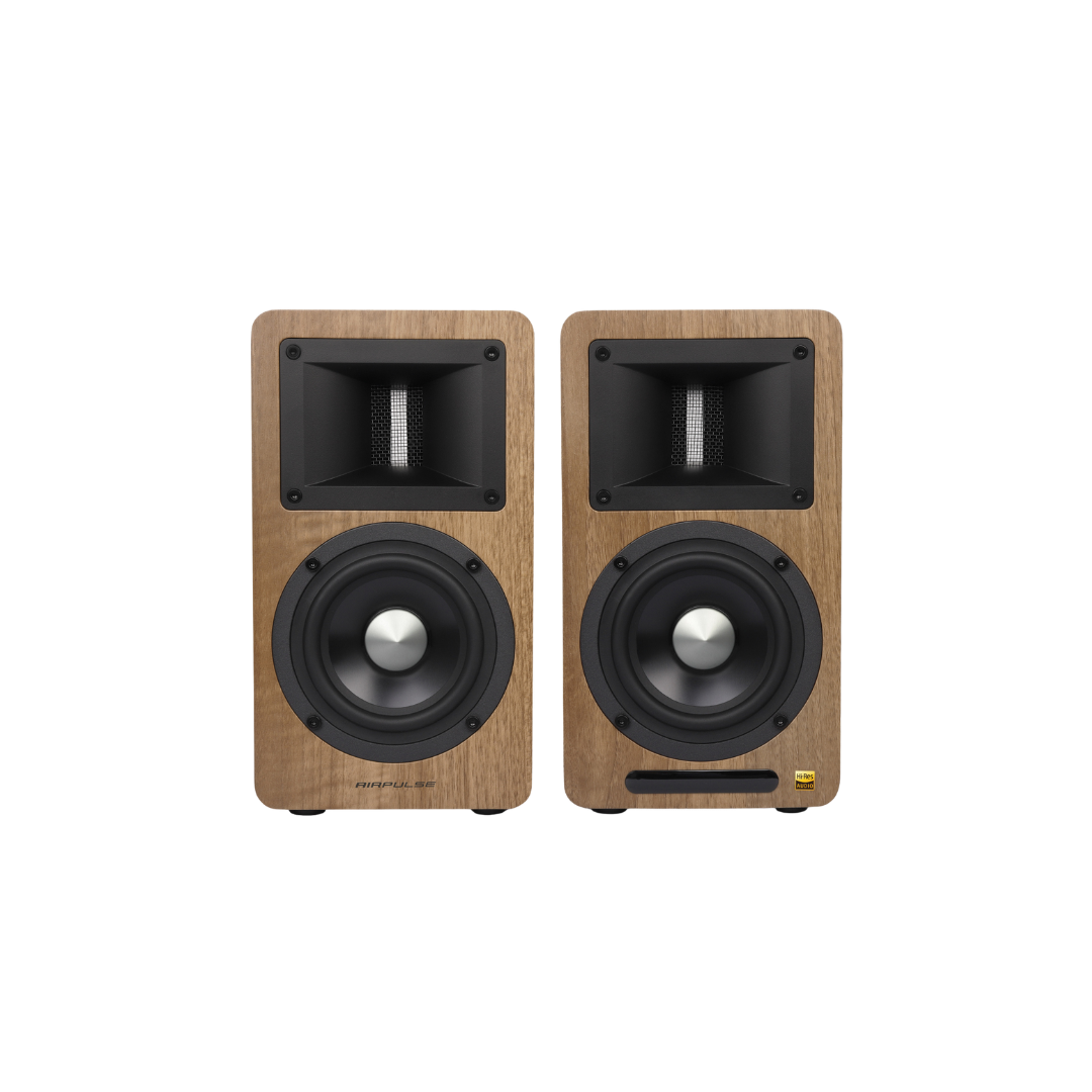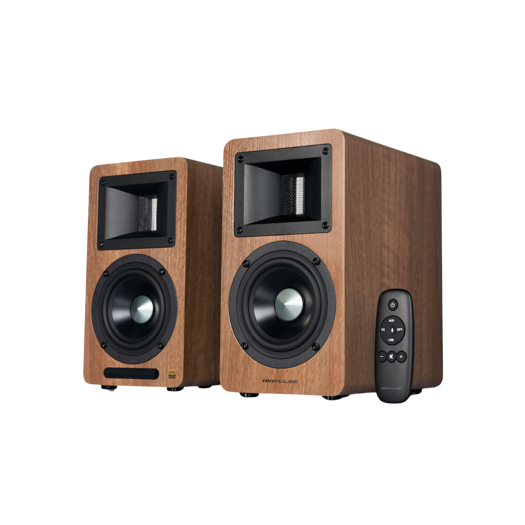The Airpulse A80 active bookshelf speaker system blends traditional loudspeaker design with advanced digital technology powered by XMOS. Certified for Hi-Res audio, it delivers high-quality audio playback with precision.
